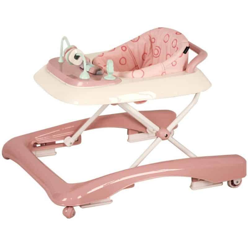 Tämän kävelytuolin kanssa lapsen on turvallista liikkua, sillä siinä on takana neljä kevyesti rullaavaa pyörää. Ensiaskeltuolin korkeus on säädettävissä 3 eri korkeuteen (alin asento n. 20cm – ylin n. 25cm). Tuote soveltuu alkaen 6-7 kuukauden iästä käytettäväksi, siitä lähtien kun lapsi osaa itse istua tukevasti. Siinä vaiheessa kun lapsi osaa jo itse seistä, voidaan kävelytuolia käyttää työntökärryn tapaan kävelytukena.