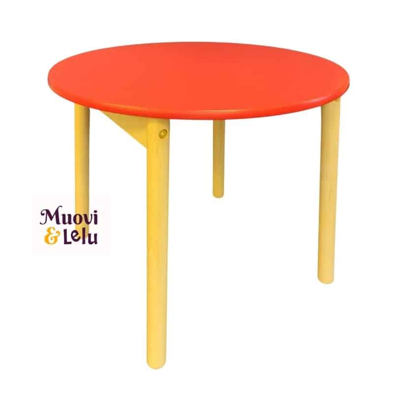 - Punaisen värinen pöytälevy, lakatut jalat.