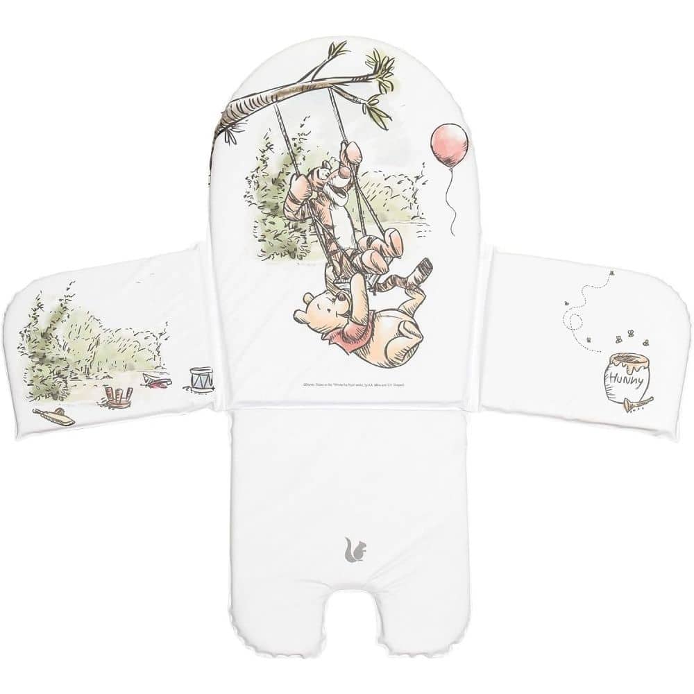Tyylikäs Nalle Puh -istuinpehmuste.Yleismallinen pehmuste, sopii useimpiin syöttötuoleihin. Helppo pitää puhtaana pyyhkimällä kostealla liinalla.