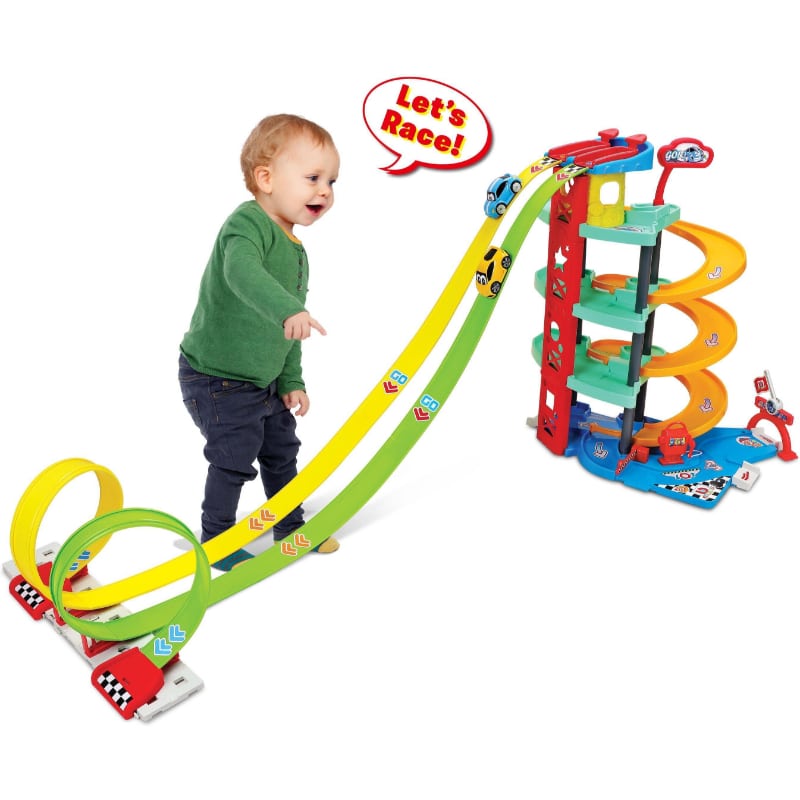 Autorata Bb Junior Mega Race Track set – Lapsesi näkee pian unta tästä upeasta autorata setistä. Kilpaile mukana tulevilla Bb Junior-ajoneuvoilla kahdella rinnakkaisella kaistalla silmukoiden avulla tai lähetä autot alas kierrekaistaa pitkin. Täytä säiliö huoltoasemalla ja kiidä lippua kohti voittaaksesi kilpailun. Tämä autorata sisältää kaiken tarittavan autolla kilpailemiseen sekä auttaa kehittämään lapsen näköaistia, hienomotorisia taitoja ja mielikuvitusta.