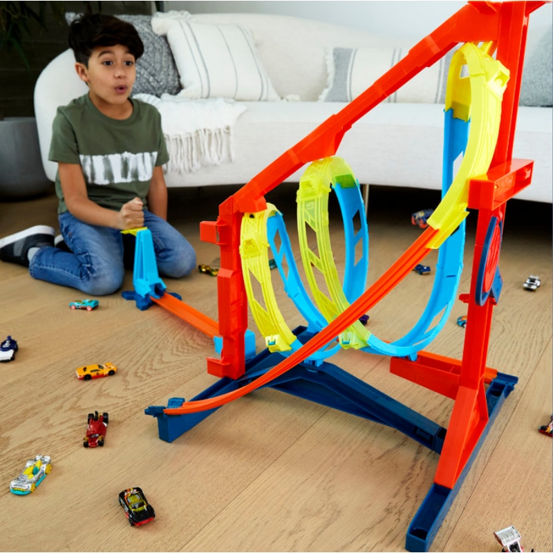 Valloita huikea korkkiruuvirata ja treenaa itsesi mestariksi! Aja kolmoissilmukka kunnialla loppuun asti ja voita kilpailu. Voit myös koota radan toisella tavalla ja laukaista autosi silmukoiden keskeltä näyttävään lentoon! Pakkaus sisältää: Hot Wheels-radan ja yhden auton. Huikean hieno lahjaidea! Ikäsuositus: 6+ vuotta.