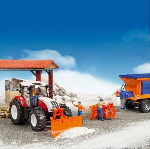 Lisä-osa Bruder työkoneisiin. Täysin toimivaa auran terää voidaan siirtää, säätää korkeutta ja lukita paikalleen. Se sopii kaikkiin Profi-sarjan traktoreihin ja MB Unimogiin.