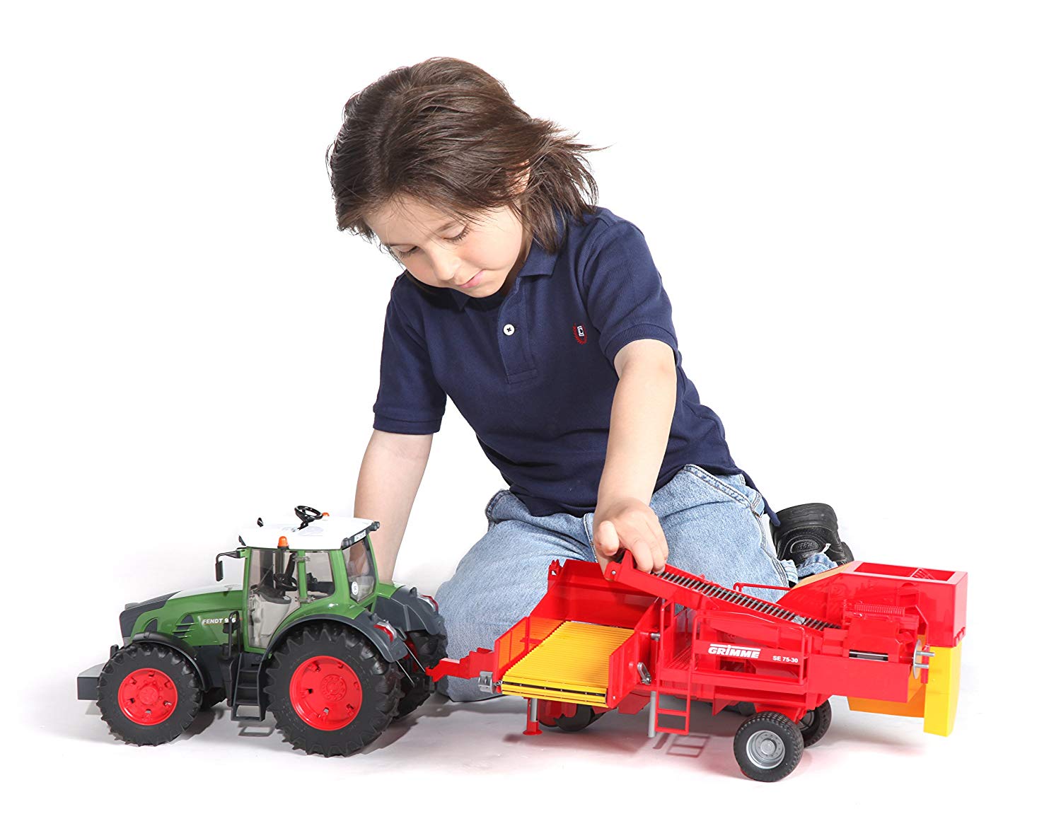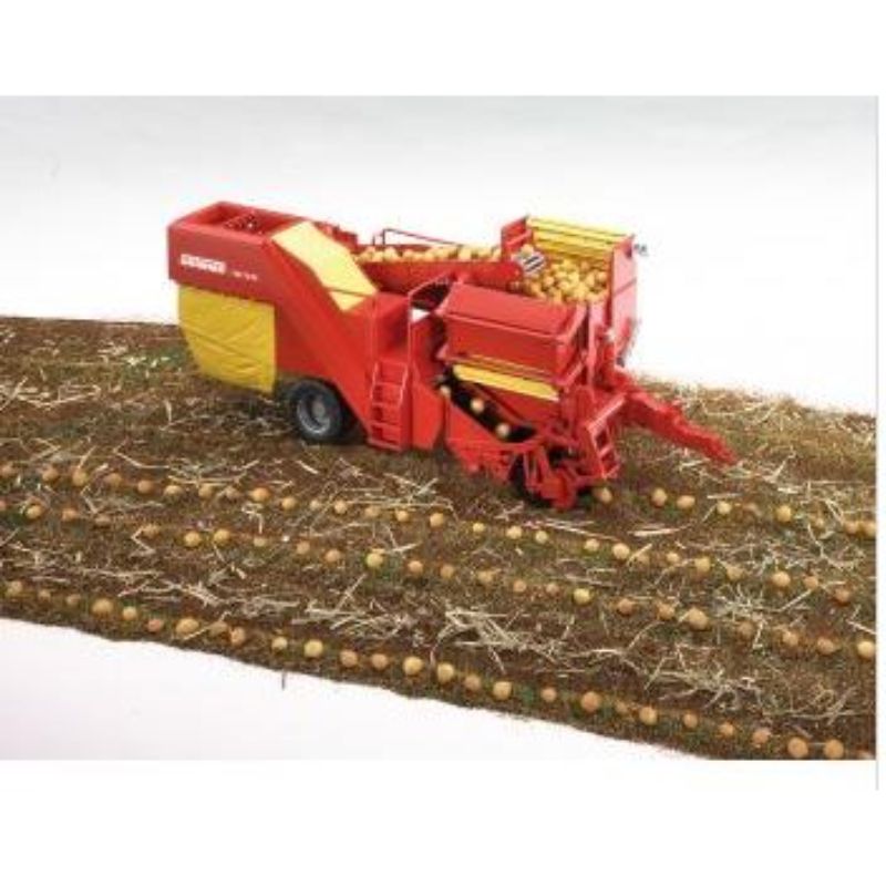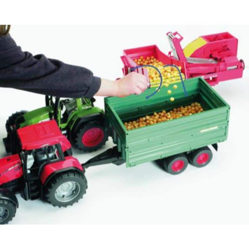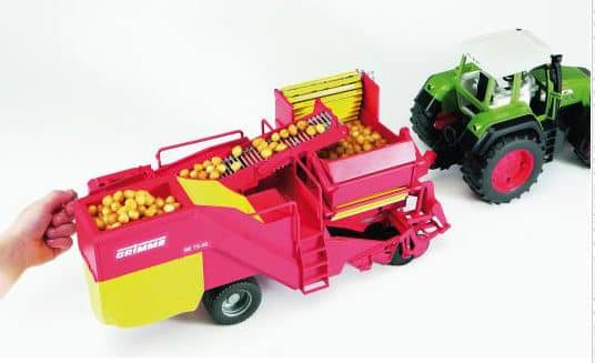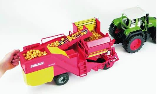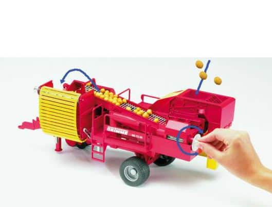 Punainen perunannostokone jossa on erilaisia toimintoja.