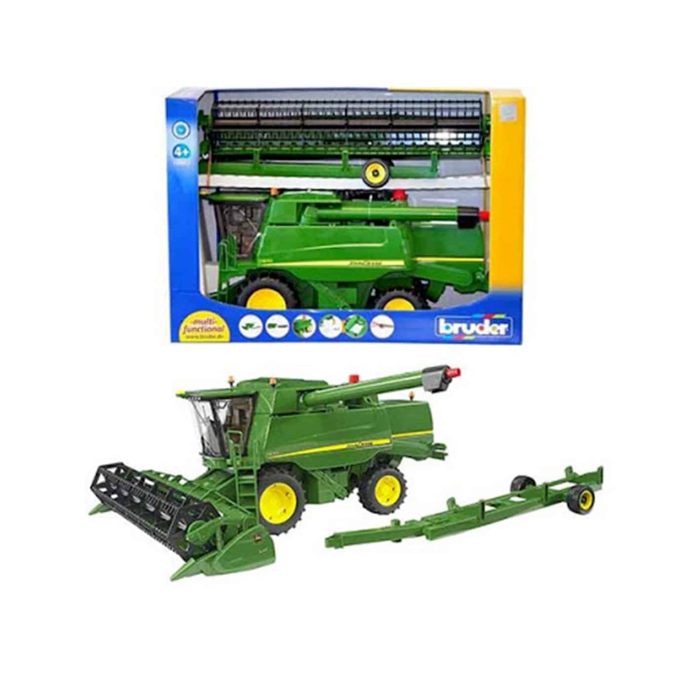 - Pikku maanviljelijät ovat haltioissaan, kun huomaavat, miten helppoa tämän suuren leikkuupuimurin käsittely on ja kuinka jännittävää on tyhjentää viljasäiliö tyhjennysputkella. Laitteessa on paljon todenmukaisia yksityiskohtia kuten avautuvat ohjaamon ovet, monia avautuvia luukkuja, irrotettava niittokone ja muuta.