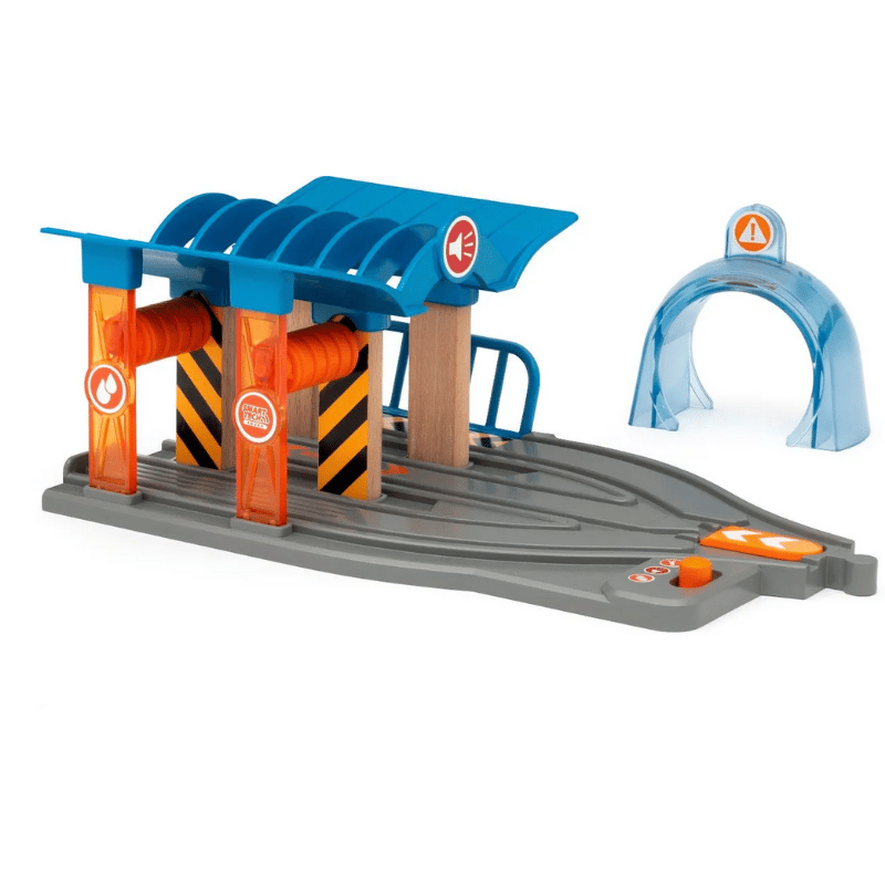 Onko Brio juna huollon ja kunnollisen pesun tarpeessa? Junien huoltoasema 33975 huoltaa kaikki sen läpi kulkevat BRIO World -junat. Yhdistämällä junien huoltoaseman Smart Tech -ääniveturiin 33971 (ei sisälly pakkaukseen), voit ohjelmoida siihen Smart Tech -efektejä kuten liikettä, värikkäitä valoja ja mukautettavia ääniä. Voit ohjata veturin vasemmanpuoleiselle pesupisteelle tai oikeanpuoleiselle korjaamolle tai päästä se kulkemaan suoraan aseman läpi, jos huolto ei ole tarpeen. Automaattisesti toimivat todentuntuiset junan äänet ja efektit herättävät huoltoaseman eloon. Leikkiä voi myös mukauttaa mieleisekseen Smart Tech -äänisovelluksen avulla.