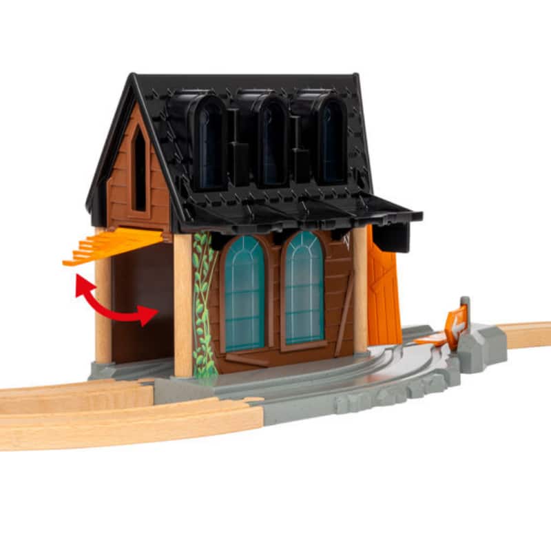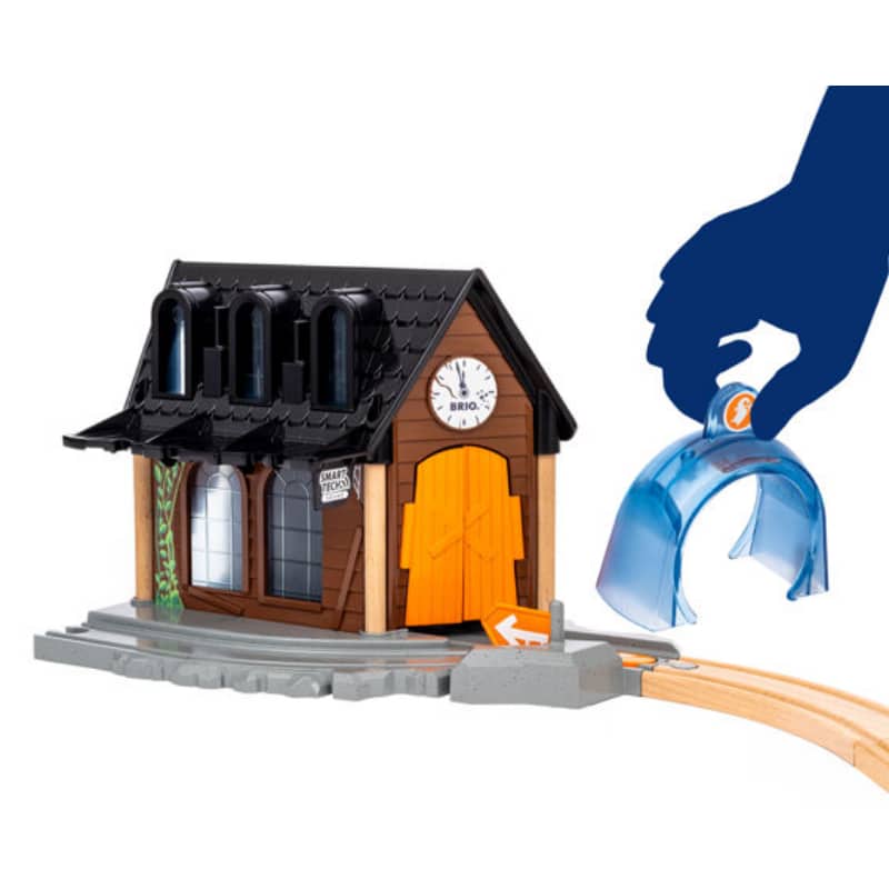 Uskallatko pysähtyä 36007 kummitusjuna-aseman pysäkille? Smart Tech Sound -juna-asema lisää BRIO World -junasetteihin pelottavia elementtejä: karmivia ääniä, värikkäitä valoja ja kammottavan konduktöörin. Lähetä 36007 Äänittävä veturi (ei sisälly pakkaukseen) rikkinäisten ovien läpi ja katso, kuinka asema herää eloon aavemaisin valo- ja äänitehostein. Jos haluat tunnelmasta vieläkin aavemaisemman, sammuta valot, jolloin asema ja sen kammottava konduktööri hohtavat pimeässä.