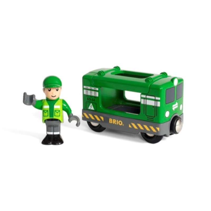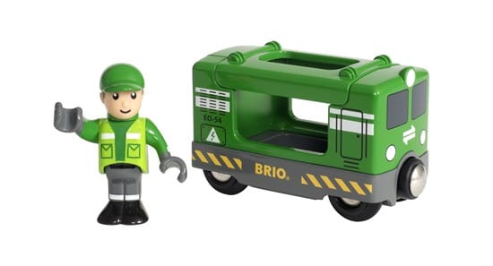 Tämä pieni veturi tekee leikeistä entistä hauskempia. Tavarajunan veturin katon voi avata, jolloin kuljettajan pystyy asettamaan paikalleen ohjaamoon. Kaikki kyytiin!