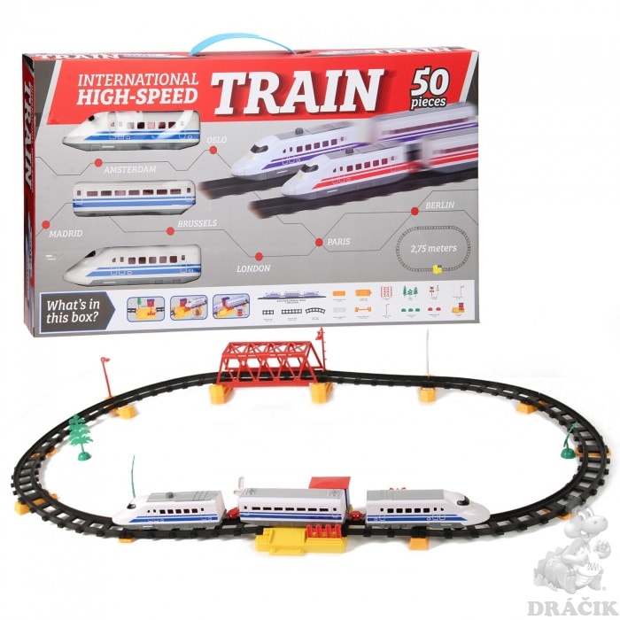 Moderni junarata pikajunalla. Pakkauksessa yhteensä 50 osaa, joilla voit rakentaa radan paristoilla kulkevalle pikajunalle. Radan pituus yhteensä 2,75 metriä. Lajitelmassa kaksi eri väriä: punainen ja sininen. Paristot: 2 x LR06 (ei sisälly). Tuotteen mittatiedot: 54,8 x 31,1 x 5,1 cm – 1,053kg.