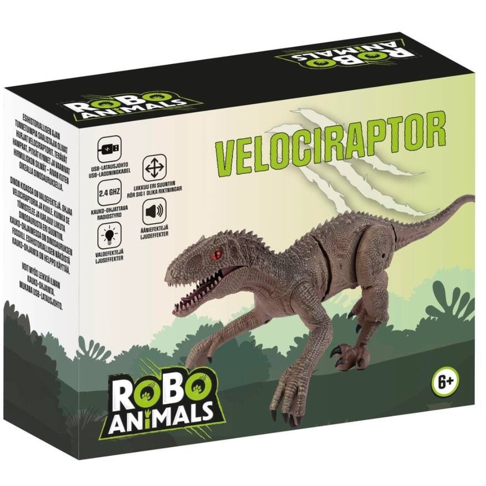 Dino R/C Velociraptor Robo Animals – Villit raptorit ovat dinofanien suosikkeja. Liikuta hurjaa Velociraptoria ohjaimella eteen- ja taaksepäin ja laita se karjumaan. Lelussa on valoefektejä. Mukana tulee: ladattava litiumakku ja USB-latausjohto. Ohjaimen paristot 2 x AA eivät sisälly pakkaukseen. Osta erikseen! Ikäsuositus: 6+ vuotta.