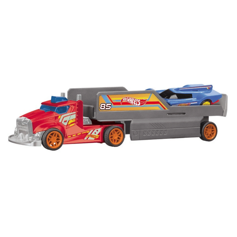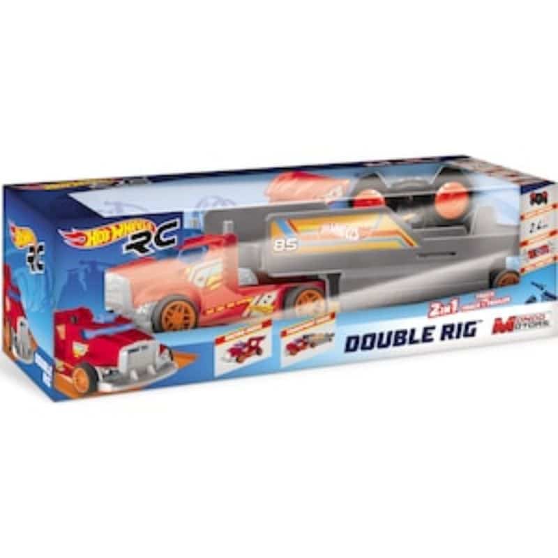 Ärhäkän näköinen kauko-ohjattava autonkuljetusrekka Hot Wheels Big Rig on suunniteltu myös kilpa-ajoon. Irrota perävaunu ja nosta spoileri ylös, niin siitä tulee aerodynaamisempi kilpuri.