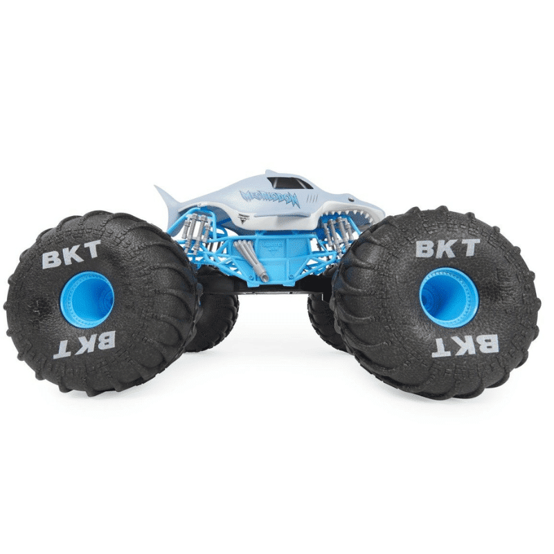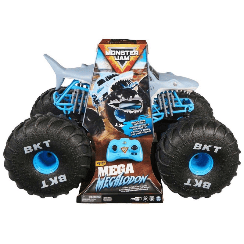 Tämä fanien suosikki ajoneuvo on täysin toimiva kauko-ohjattava; aja eteen- ja taaksepäin ja ohjaa vasemmalle ja oikealle. Yksityiskohtainen runko, viralliset BKT renkaat ja aidon näköinen alusta, tämä Megalodon- kopio on kuin ajaisi aitoa asiaa. Et ole koskaan ollut lähempänä toimintaa kuin Monster Jamilla. Monster Jam monsteriautolelut ovat täydellisiä lahjoja yli 4- vuotiaille lapsille.
