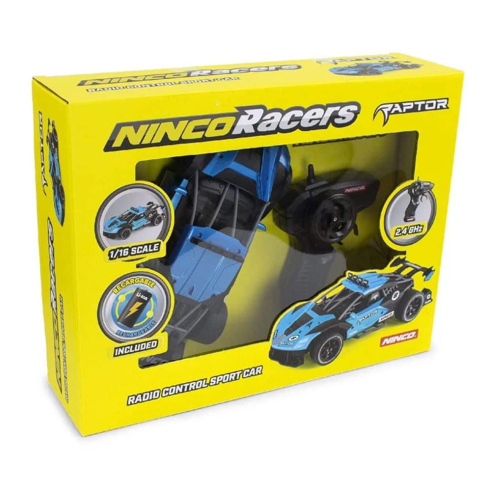 Koe vauhdin riemu NINCO Raptorilla, 25 cm:n 1:16 mittakaavan akkukäyttöisellä radio-ohjattavalla autolla, joka toimii 2,4 GHz:n lähettimellä. Tämä upea auto tarjoaa hienoja ominaisuuksia.