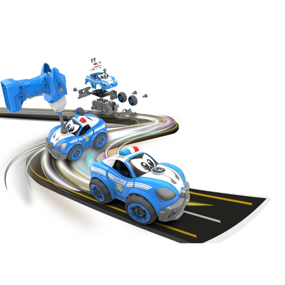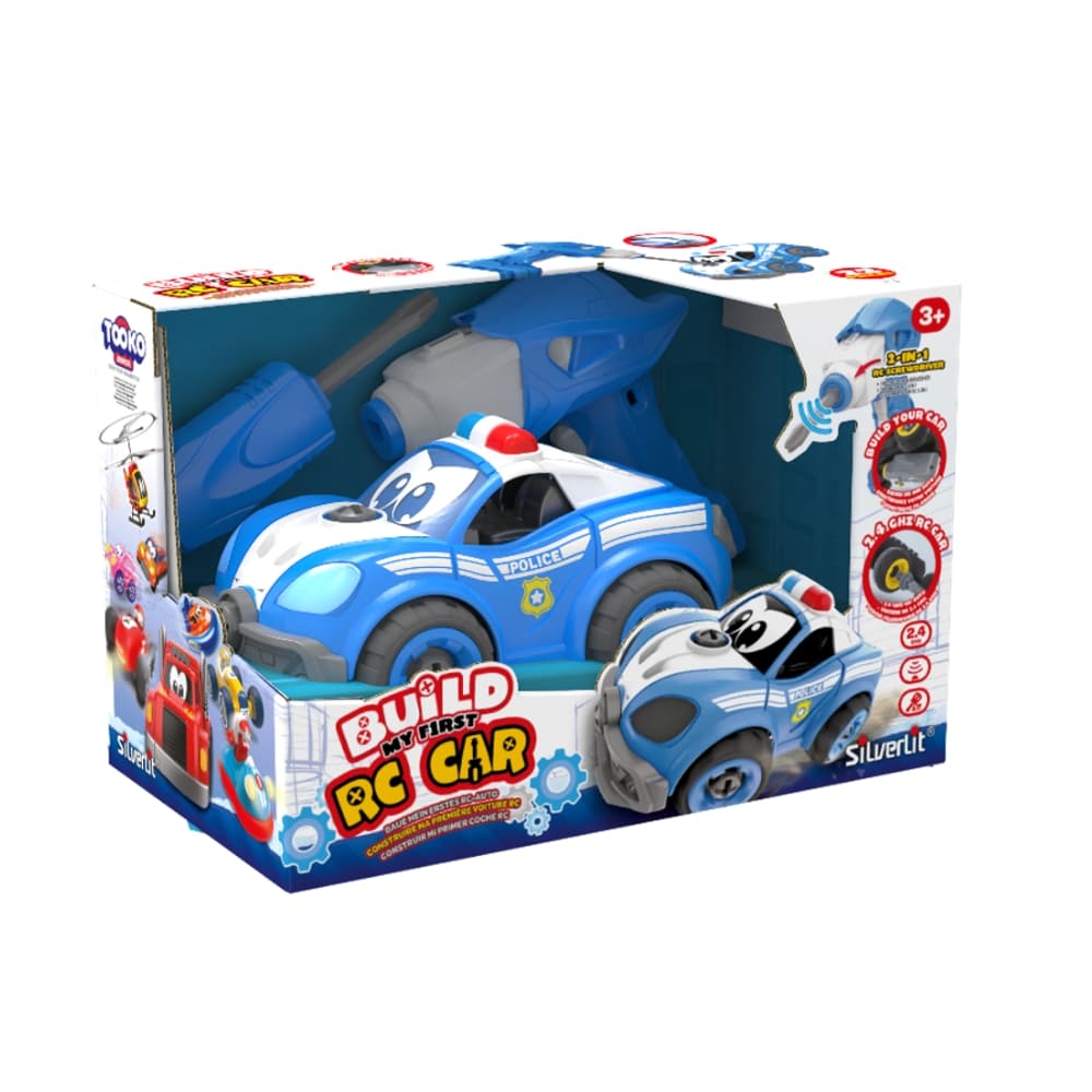 Tooko Build My First RC Car – Rakenna oma ensimmäinen radio-ohjattava autosi! Patterikäyttöisellä 2-in-1-ruuvimeisselillä voi turvallisesti koota oman RC-poliisiauton. Kun ruuvimeisselin patterikäyttöinen moottori asetetaan auton moottoriksi, tulee siitä upea RC-poliisiauto, jossa on äänitehosteet. 2,4 GHz:n kaukosäätimessä on eteen- ja taakse-toiminnot sekä virtanappi ja merkkivalo.
