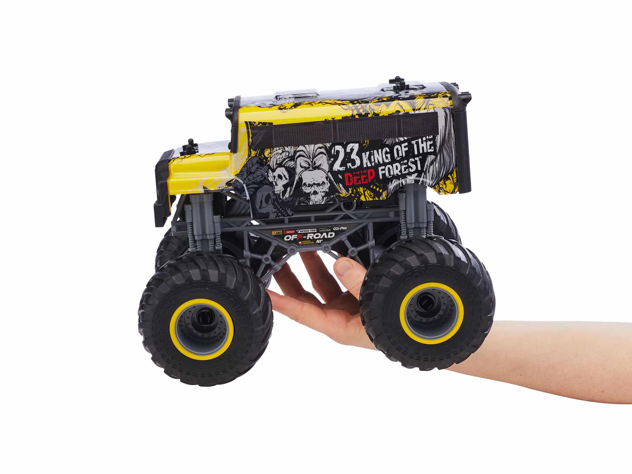 Tämä messevä, kauko-ohjattava monsteriauto huomataan varmasti. RC auton Li-Po-akku ladataan USB:n avulla. Ajoaika on noin 15 min. 180 minuutin latauksella. Auton pituus on 28 cm.