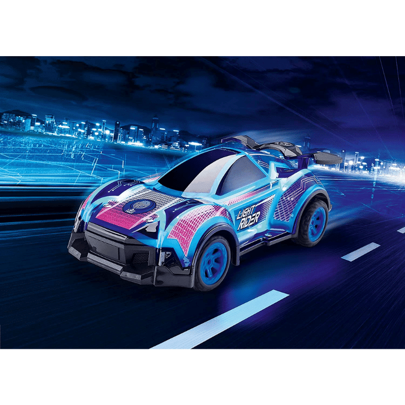 RC auto, jonka runko on valaistu näyttävästi. Auton valoja ja ääniä voi säätää. 2.4 GHz ohjain on myös valaistu. Auto on USB ladattava (laturi sisältyy).