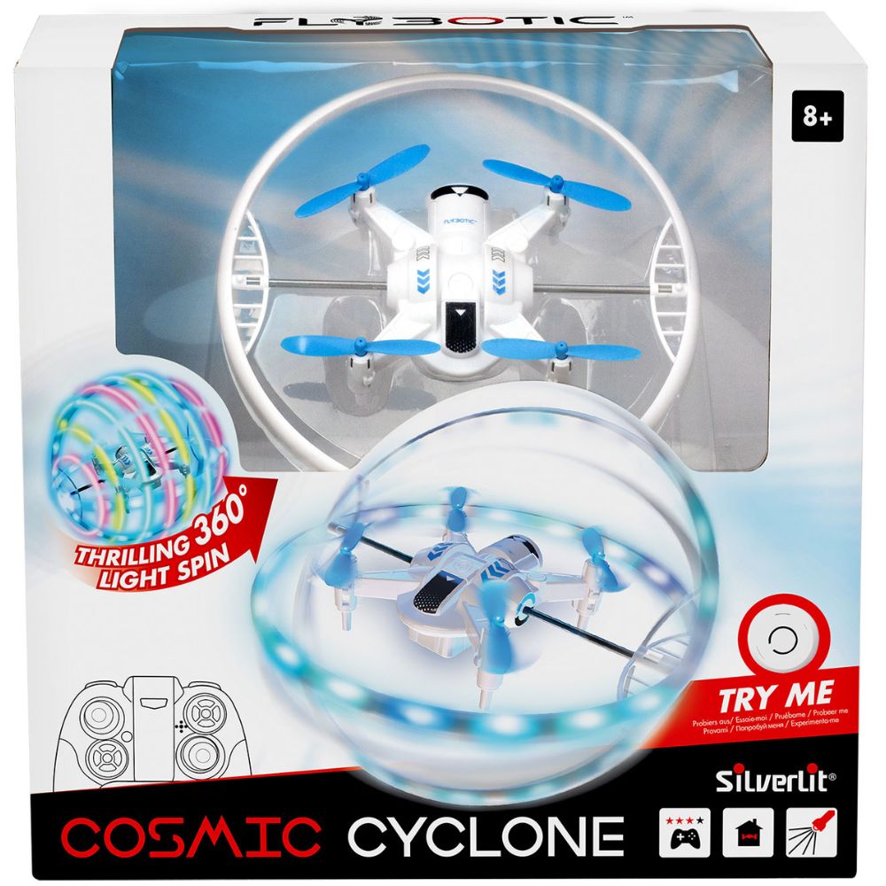 Valmistaudu Cosmic Cycloneen – se on enemmän kuin pelkkä lennokki, se on lentävä valoshow! Sen LED-kiertorengas muuttaa lennokin kiehtovaksi lentopalloksi. Muuttaa taivaan henkilökohtaiseksi kankaaksi.