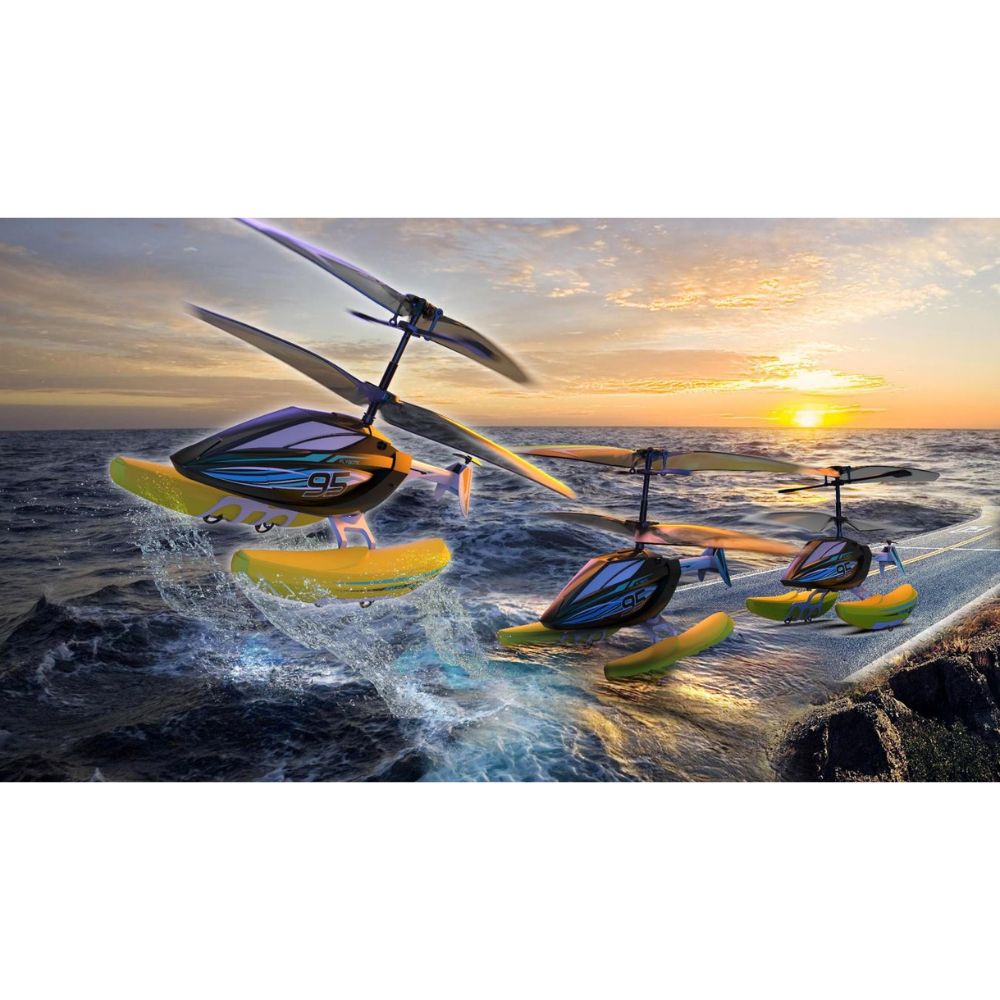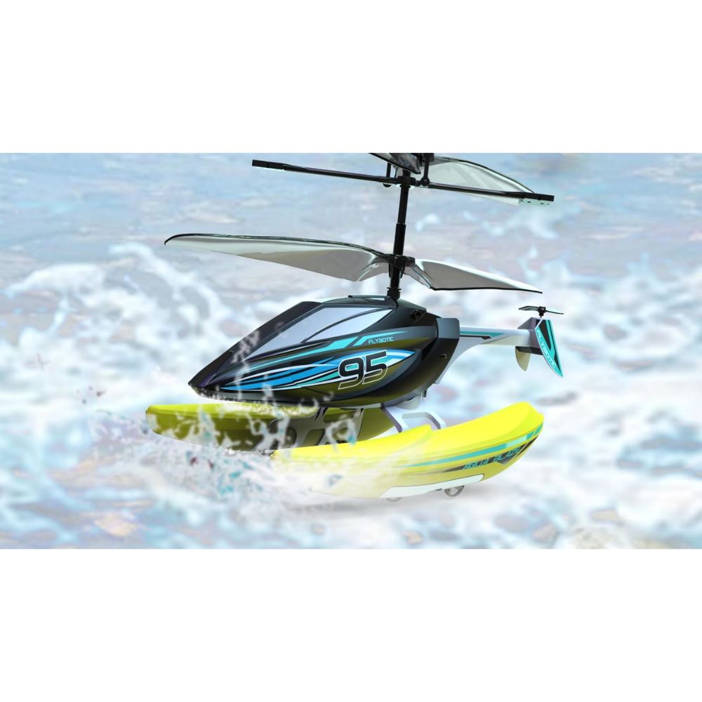 Flybotic Aqua Blaze on uudenlainen lennätettävä helikopteri, joka on suunniteltu ulkokäyttöön. Sen vettä hylkivän rungon ansiosta voit lentää ilmassa ja laskeutua veteen. Gyroskooppinen tekniikka. 3CH Amfibiohelikopterissa on 3-kanavainen ohjaustoiminto; ylös ja alas, vasemmalle ja oikealle sekä eteenpäin ja taaksepäin.