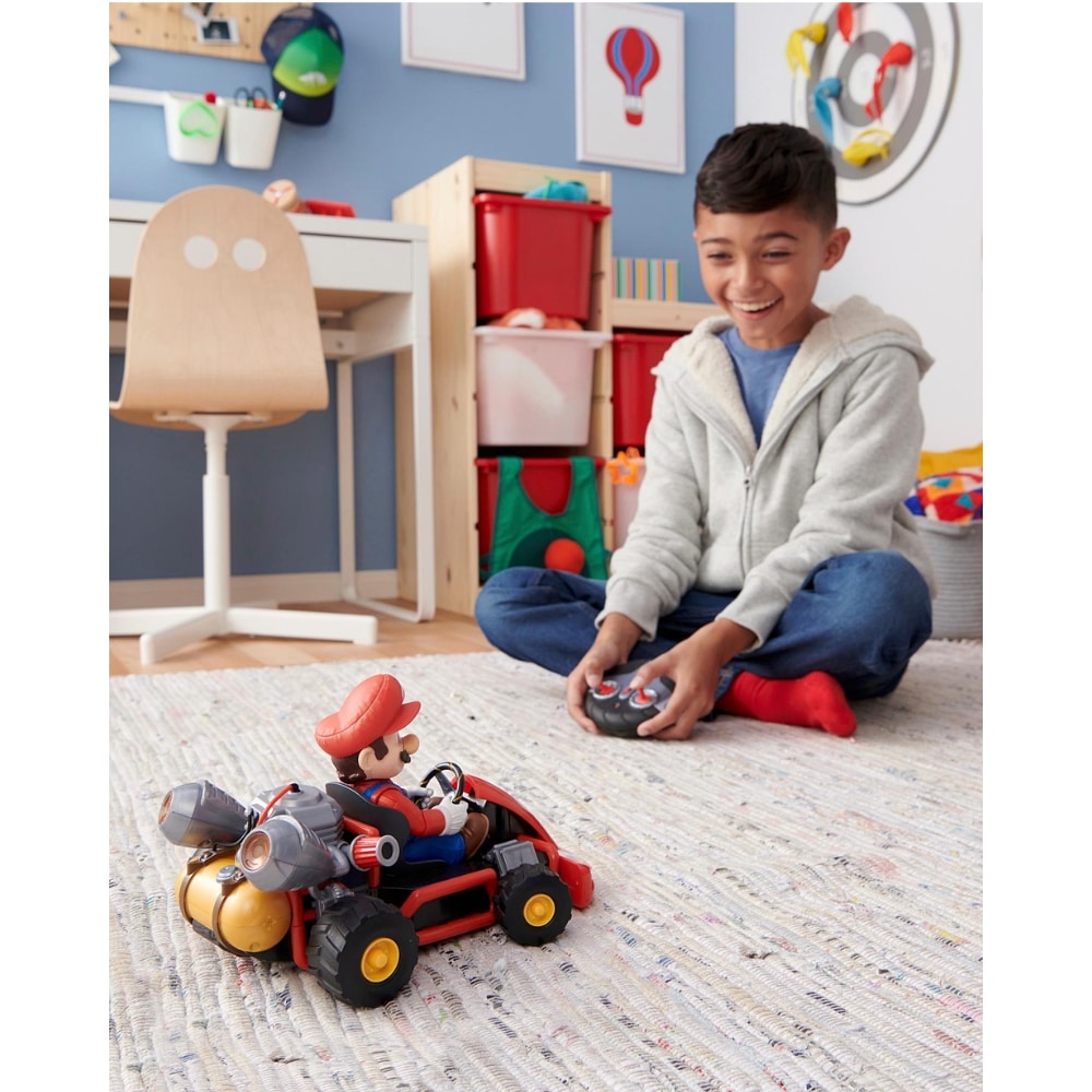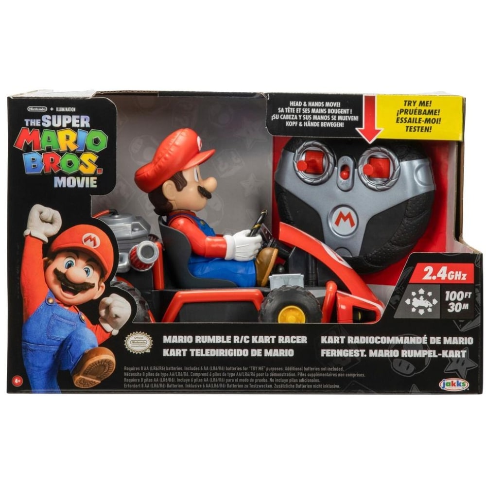 Kauko-ohjattava Super Marion auto. Lisäsuorituskyvyn ansiosta voit keulia ja pyörähtää 360 astetta. Kaukosäätimessä täystoiminnallinen liikkeen ohjaus. Super Marion kädet ja ohjauspyörä pyörivät ja pää kääntyy vasemmalle sekä oikealle.