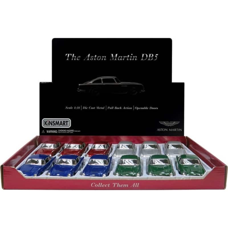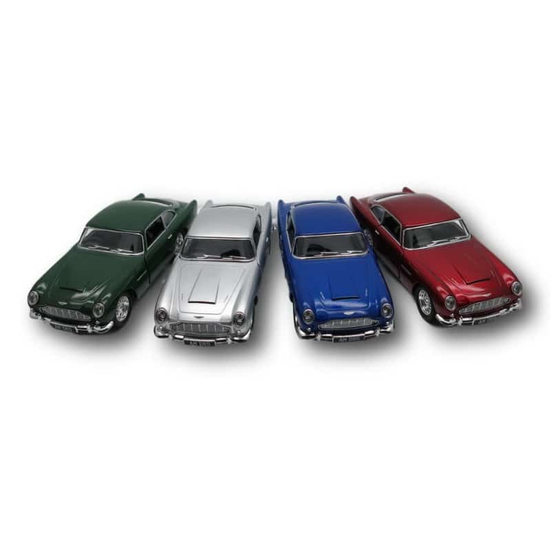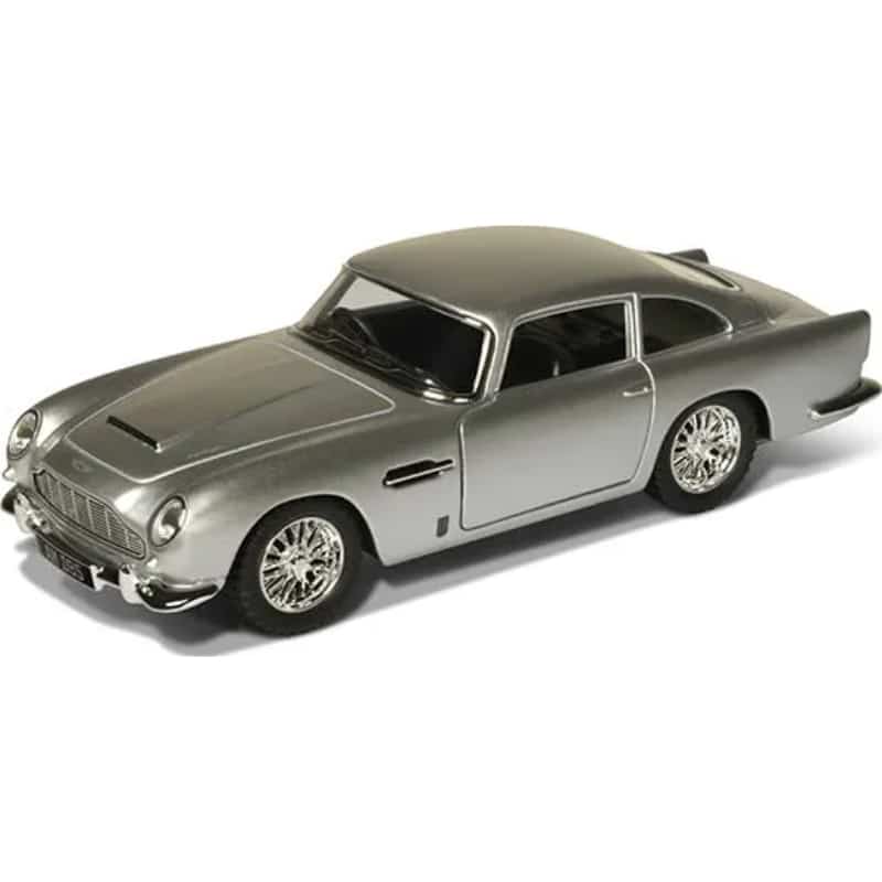 Klassikko – metallinen Aston Martin DB5. Kulkee pull back -mekanismilla. Autossa avautuvat ovet.