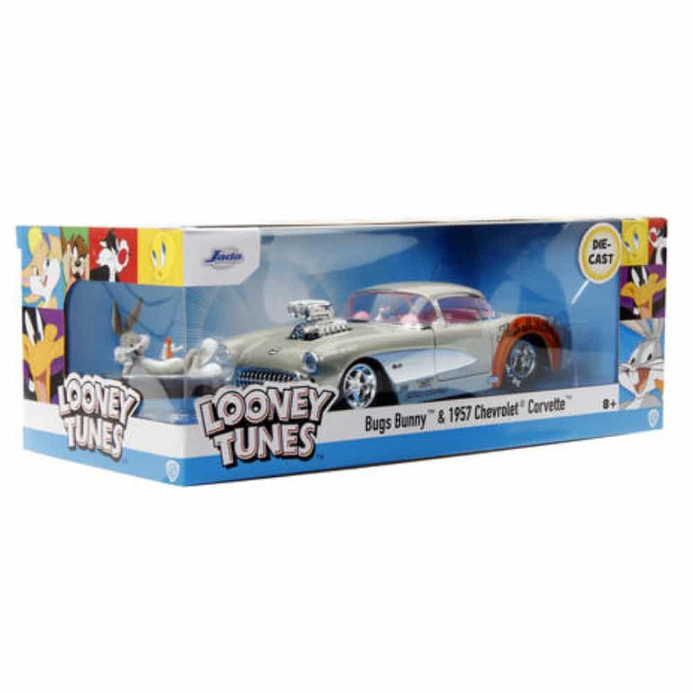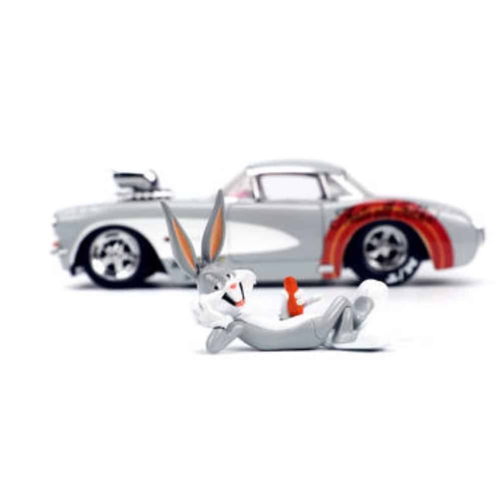 Die-cast valetussa autossa on avautuvat ovet ja rullaavat kumirenkaat. Mukana vauhdikkaissa leikeissä myös porkkanaa mutusteleva Bugs Bunny!