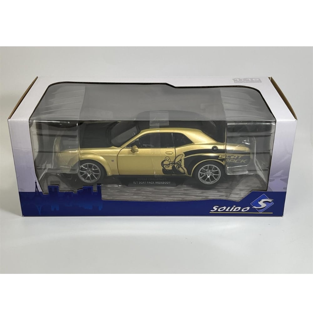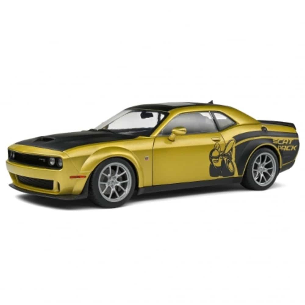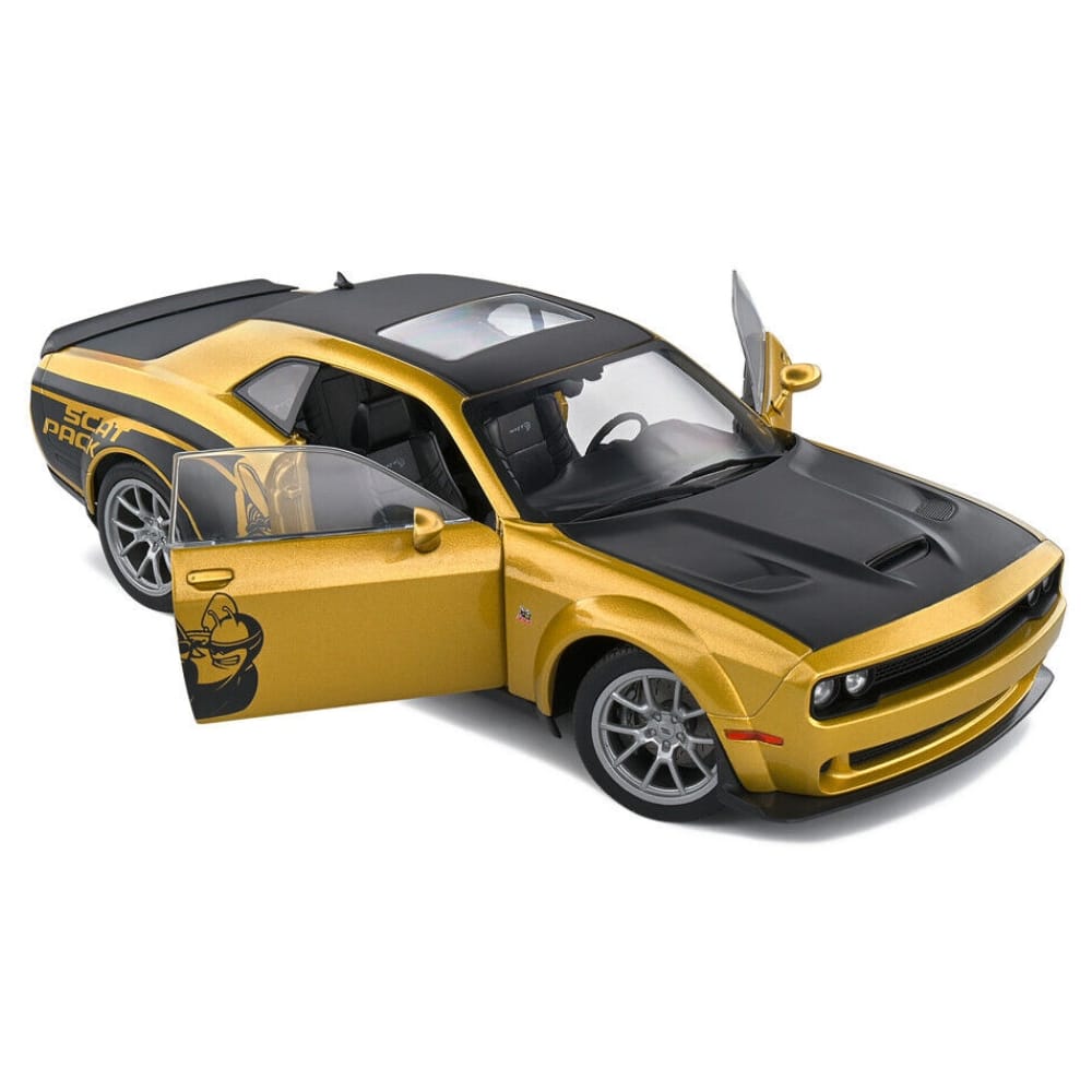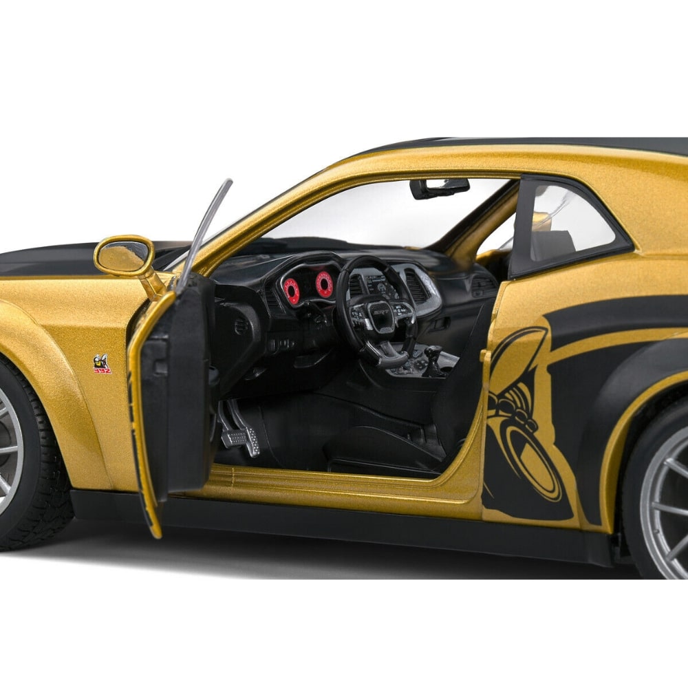 Dodge Challenger R/T scat pack 1:18 on kaunis kultainen autopienoismalli joka on maalattu kullan ja mustan väriseksi.