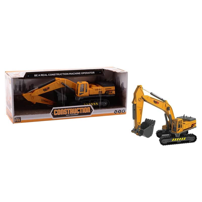 - Kaivinkone liikkuvalla korilla ja kauhalla. Kokosuhde 1:55. Kaivinkoneen koko pituus kauhan kanssa 34 cm. Korin mitat 13 x 8 cm.