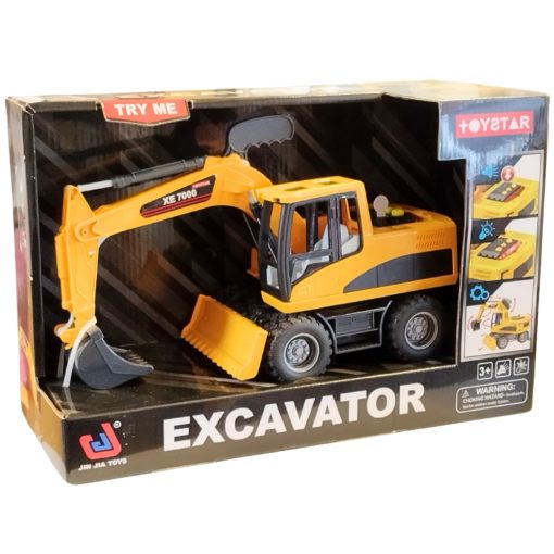 Suurille kaivuutöille jykevä kaivinkone! Kauhaa voit liikutella helposti tukevasta vivusta, joka on kauhan varressa. Koppi pyörii akselinsa ympäri, kuten oikeakin.