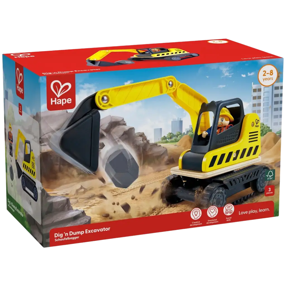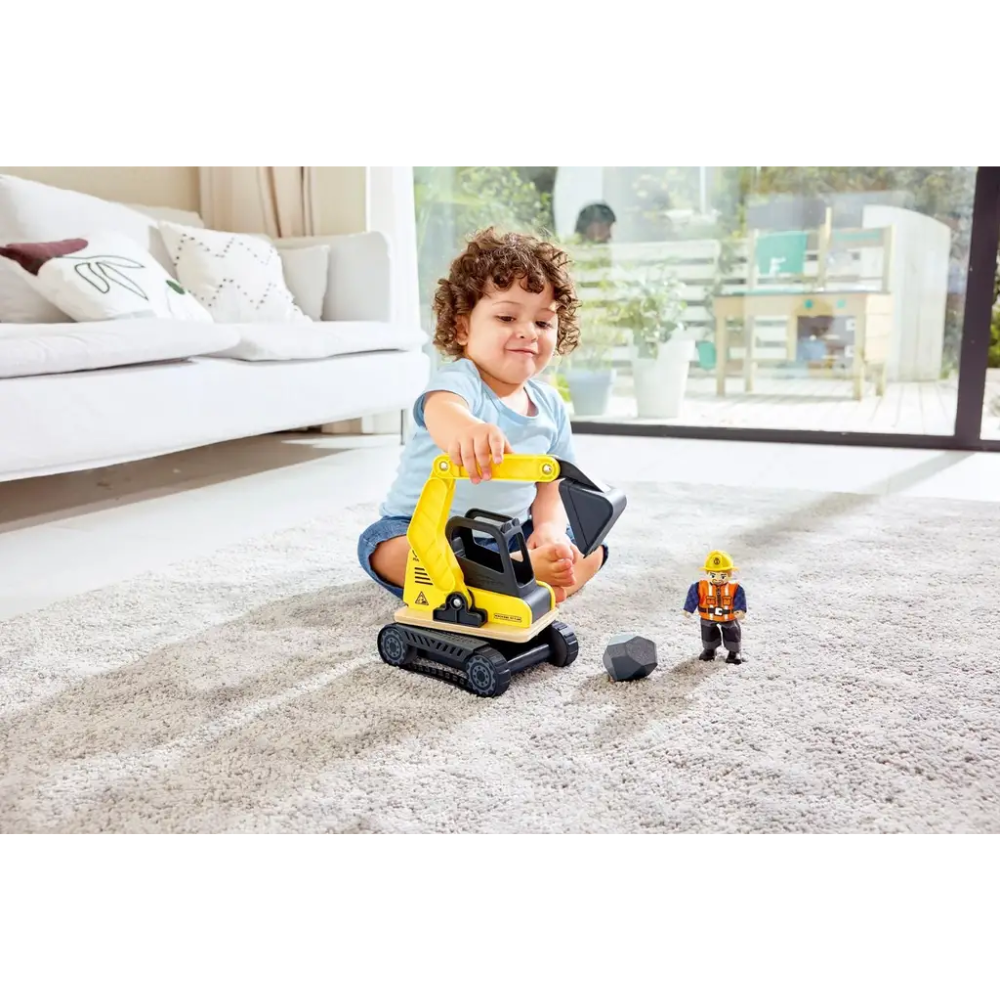 Koe maan, kivien, muun kaivamisen ja siirtämisen jännitys tällä kestävällä ja realistisella leikkisetillä. Kaivuri kääntyy 360 astetta, takana aukeava luukku. Kaivurin pituus 26 cm.