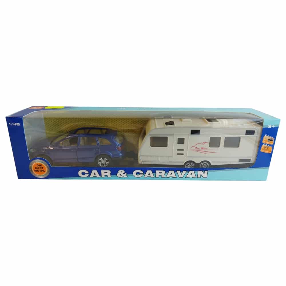 Asuntovaunu ja maasturi erilaisia – Lähde karavaanariksi tällä laadukkaalla yhdistelmällä! Setissä metallinen maastoauto sekä asuntovaunu. Auton värivaihtoehdot pun/sin. Yhdistelmän pituus 30 cm. Kokosuhde 1:48.