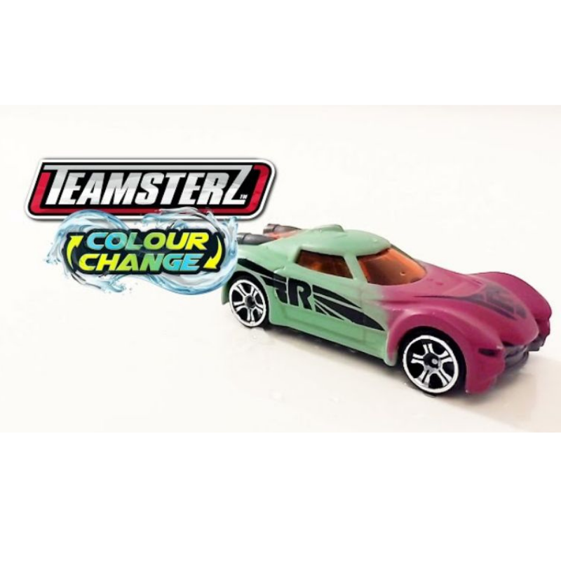 Pienet metalliset Teamsterz-autot vaihtavat väriä vedessä! Väri vaihtuu sen mukaan laittaako auton kylmään vai lämpimään veteen. Kerää kaikki!