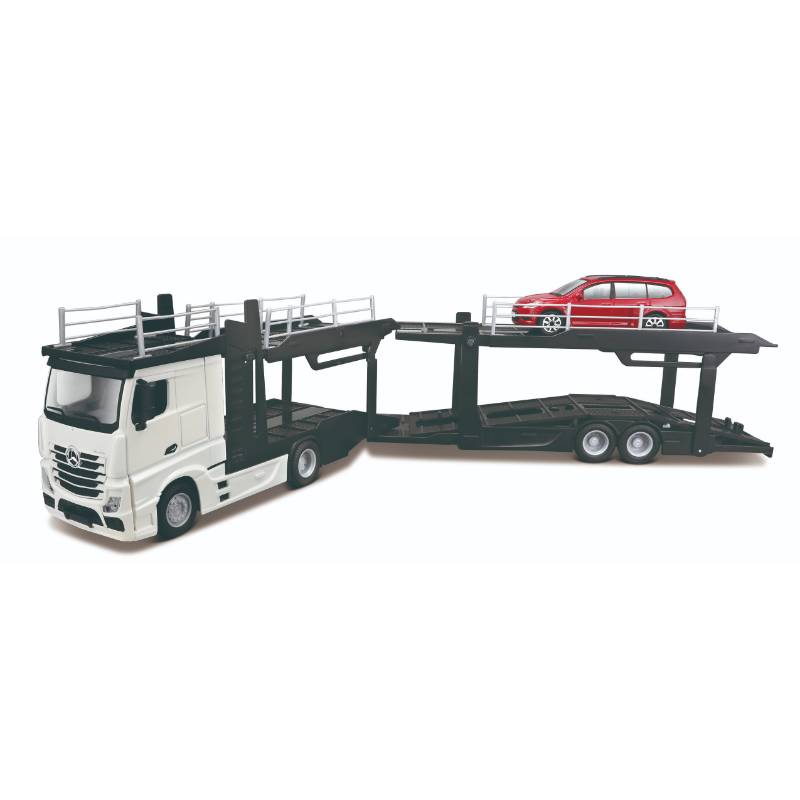 1/43 koon autonkuljetusrekka, kyydissä yksi pikkuauto.