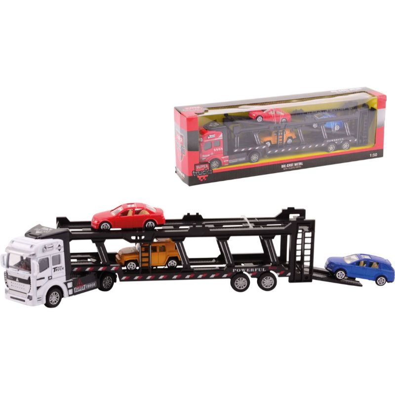 Tämän rekan kyydissä voit kuljettaa kerralla monta autoa mihin tahansa! Rekan kyydissä on kolme eri väristä autoa.