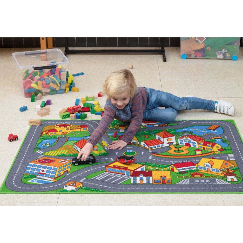 Pehmeä ja värikäs kaupunkiliikennematto.
