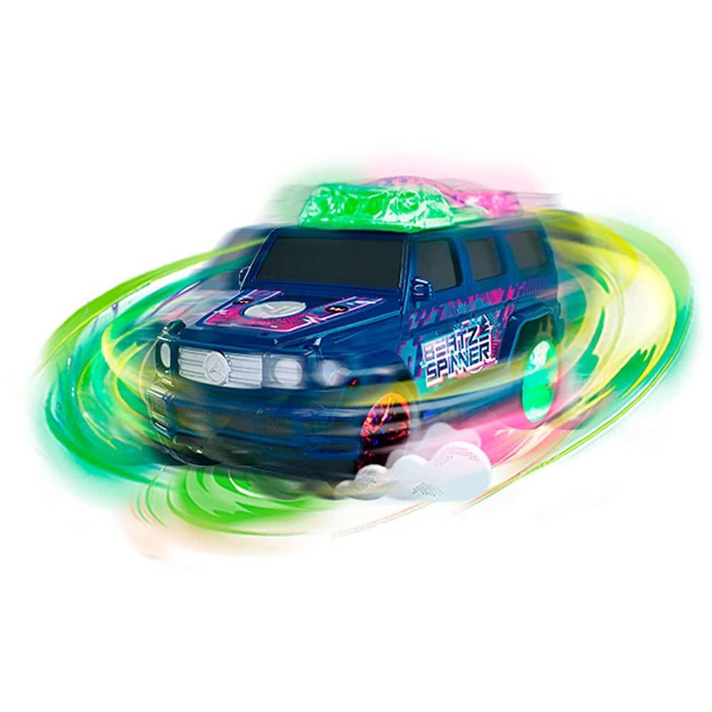 Upeita spin- ja tanssiliikkeitä! Kun painat painiketta, auto pyörii oman akselinsa ympäri (”Spin”-toiminto), ajaa sitten eteenpäin ja muuttaa suuntaa osuessaan esteeseen (”Bump & Go” -toiminto). Näitä kahta automaattista tanssiliikuntaa säestää funky elektroninen tanssimusiikki ja vilkkuvat värivalot.