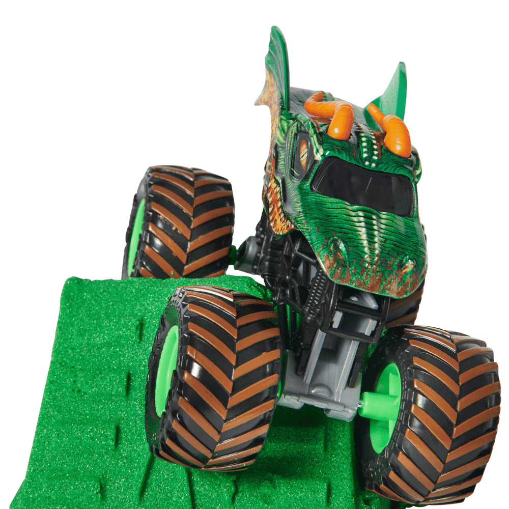 Käytä mukana tulevaa ramppimuottia tai työkalua muokataksesi ja rakentaaksesi aivan oman Monster Dirt rampin nopeaa, korkealentoista toimintaa varten! Kun et ole leikkimässä voit käyttää ramppia säilytyslaatikkona. Monster Jam lelut kuten kauko- ohjattavat autot ja monsteriautot ovat täydellisiä lahjoja yli 3- vuotiaille tytöille ja pojille. Starttaa oma Monster Jam tapahtumasi Monster Dirt 453 g leikkisetillä! 3+