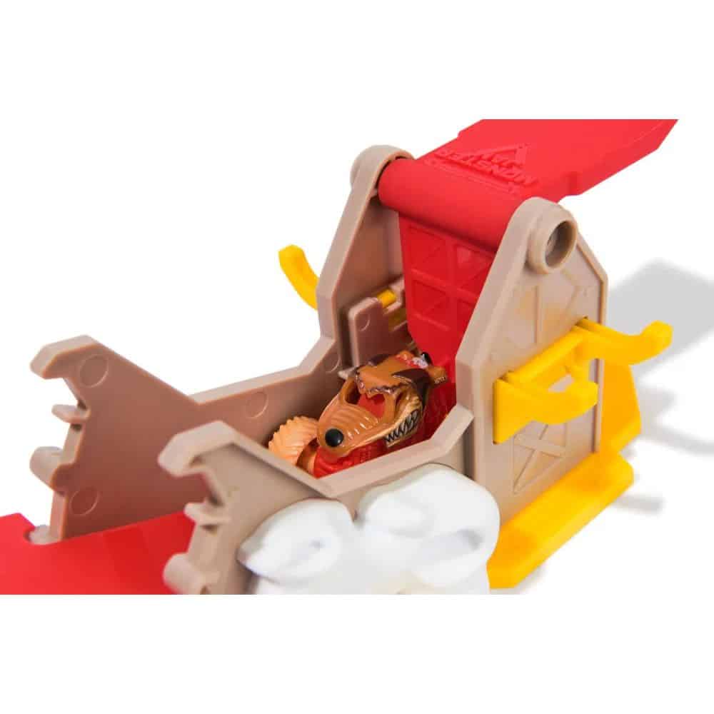 Mukana on kaksi mini Monster Jam -ajoneuvoa, jotka näyttävät aivan samalta kuin live-esityksissä näkemäsi Monster Jam -autot! Nämä miniautot ovat valmiita jyristämään suoraan pakkauksestaan tarjoten välitöntä viihdettä ja jännitystä keskinäiseen kilpailuun. Laukaisija toimii myös säilytystilana molemmille mukana tulleille autoille. Tämä varmistaa, että lapsesi voivat helposti pakata ja kantaa Monster Jam -hauskaa liikkeellä ollessaan.
