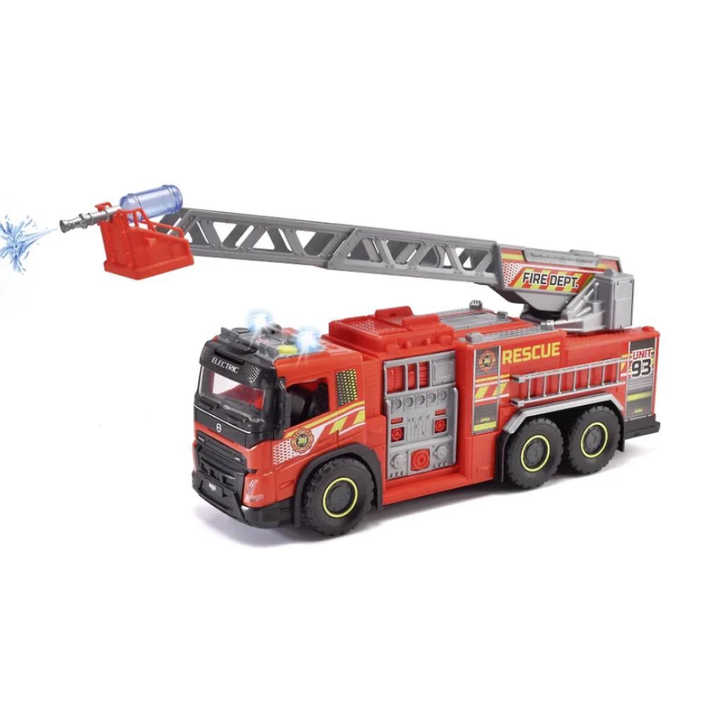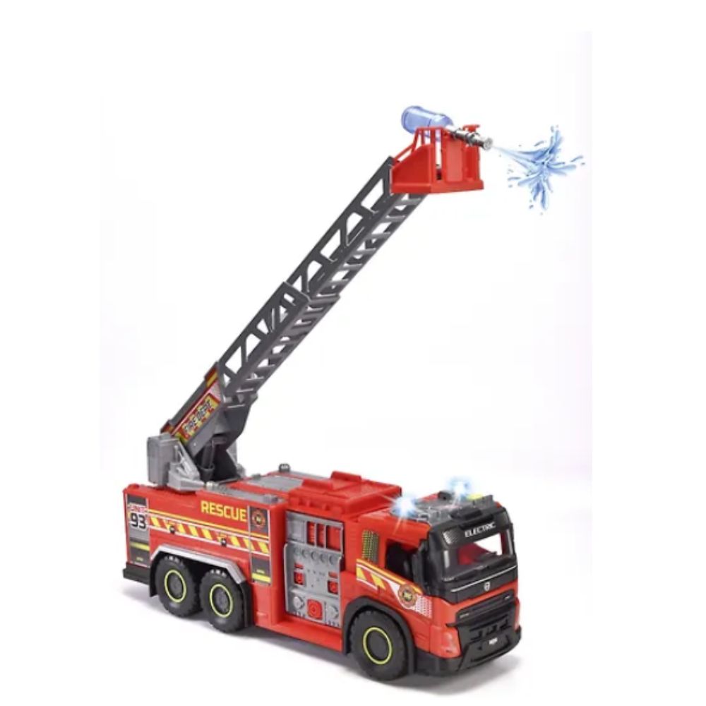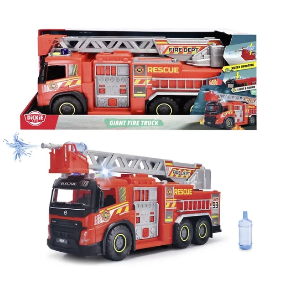 Tämä dickie toys Volvo giant fire truck on noin 57 cm pitkä paloautolelu, joka tuo pelastusajoneuvon jännityksen lasten leikkeihin. Se sisältää toiminnallisuuksia kuten äänet, valot, kääntyvän ja ulostyöntyvän tikkaiston sekä manuaalisen vesisuihkun toiminnot (kaksi vesipulloa mukana).