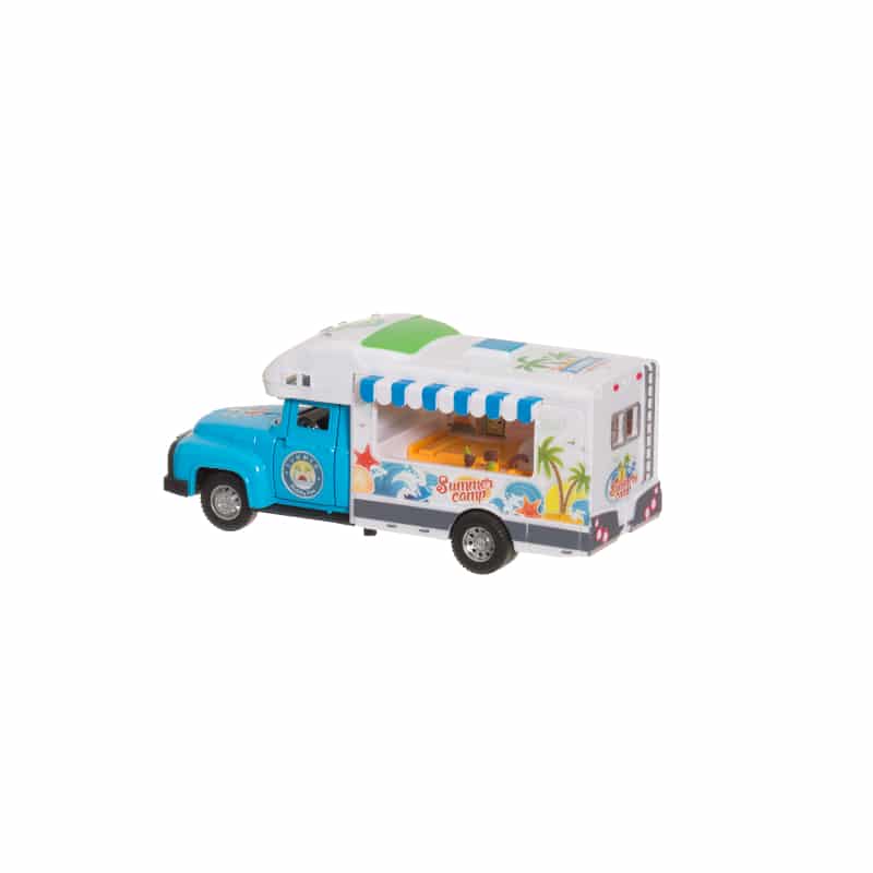 Liikkuva ruoka-auto jossa on avautuvat ovet ja katto sekä pull back toiminto. Vedä autoa taaksepäin, päästä irti ja katso kuinka kauas se ajaa.