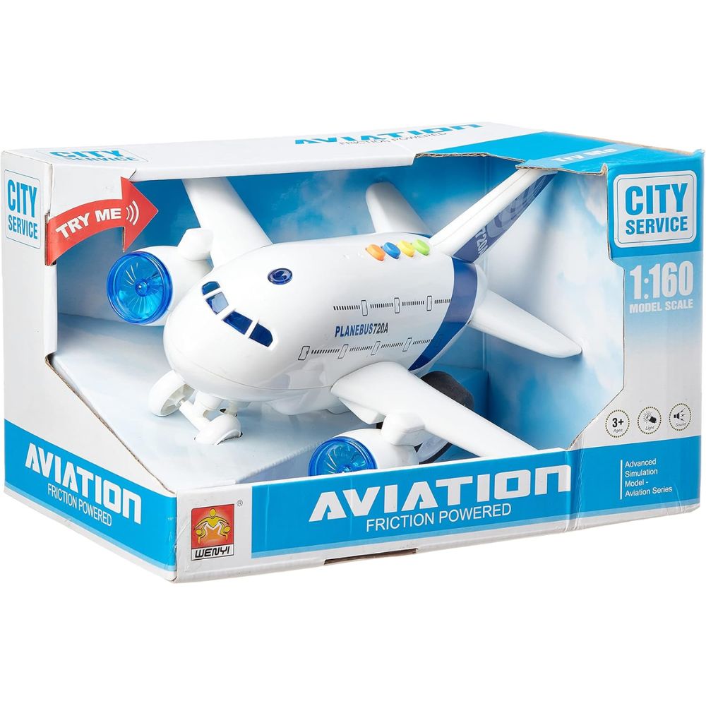 Kestävästä ABS-muovista valmistettu lentokone vauhtipyörällä, valoilla ja äänillä. Lentokoneessa mm. moottorin ääniä sekä infokuulutuksia.