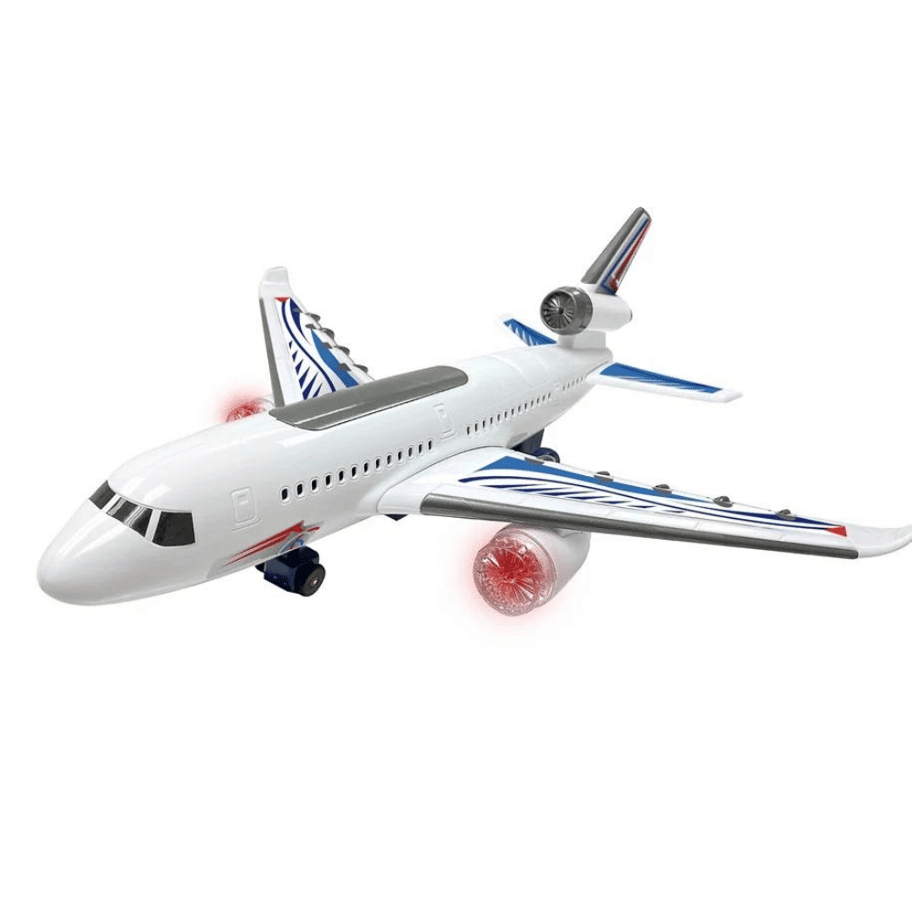 Lentokonelelu 40 cm äänellä ja valolla on jokaisen pienen lentokonefanin unelmalahja! Matkustajakone lelussa on ääni-, valo- ja liiketoiminto. Käynnistä lentokone ja aseta se lattialle. Lentokone pyörii, siihen syttyy valot ja se soittaa musiikkia. Kun se tulee seinään tai muuhun esteeseen, se kääntyy ja ajaa eri suuntaan.