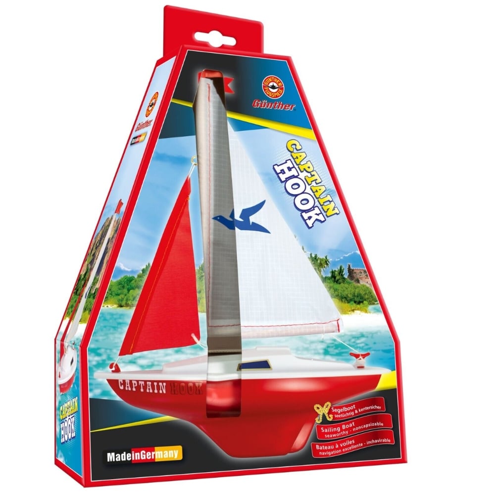 - Purjevene Captain Hook Gunther on merikelpoinen lelupurjevene. Etsi suotuisat purjehdusolosuhteet. Pienillä järvillä voit antaa purjeveneen purjehtia vapaasti, mutta isommilla vesialueilla on hyvä käyttää leijanarua. Valmistettu Saksassa.