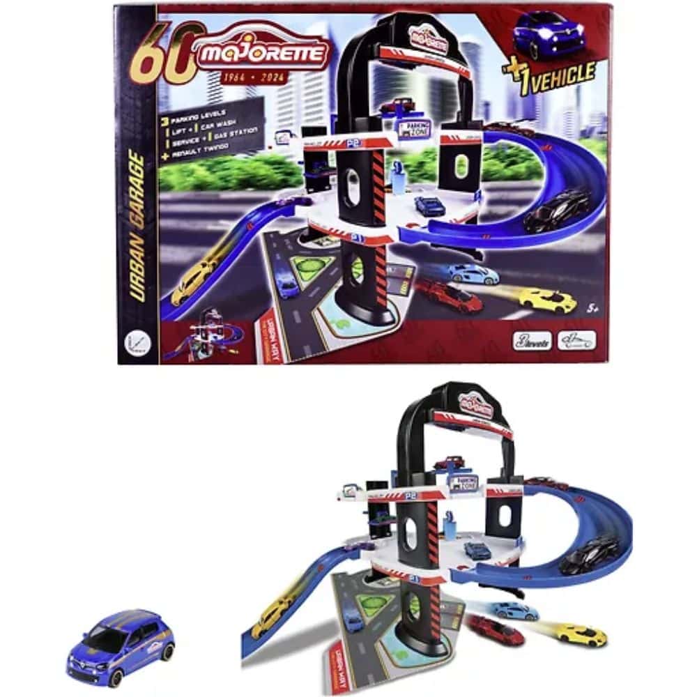 Majoretten upeassa 60-vuotisjuhlavuoden parkkihallissa on kolme kerrosta, hissi, autopesula ja bensa-asema. Huikeita ramppeja pitkin autoja voi ajeluttaa nopeasti sisään ja ulos, ylös ja alas. Tämä parkkitalo on täydellinen leikkisetti pienille autoilun ystäville.