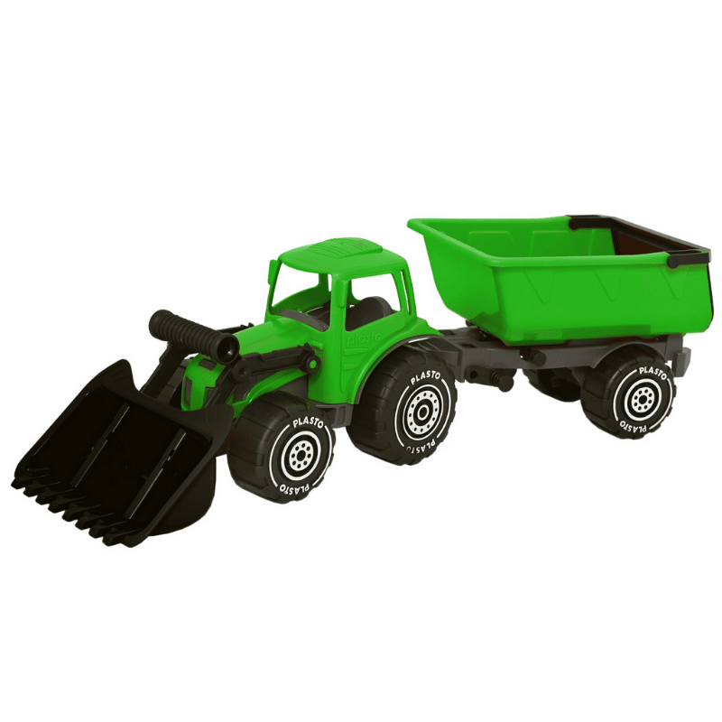 Plasto kauhatraktori ja peräkärry vihreä