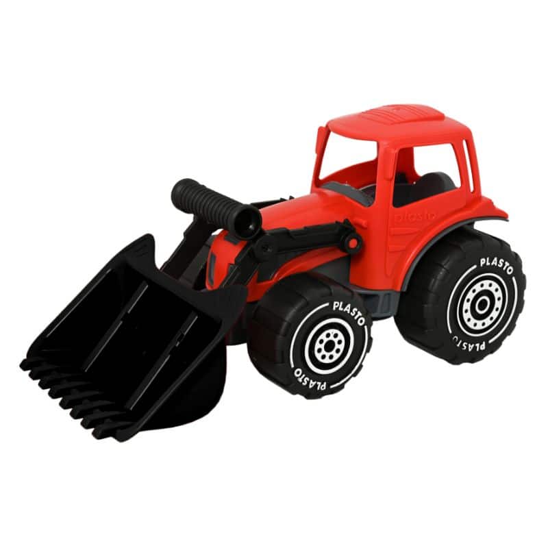 Lujatekoinen Plaston punainen kauhatraktori. Sopii sekä sisä- että ulkoleikkeihin.