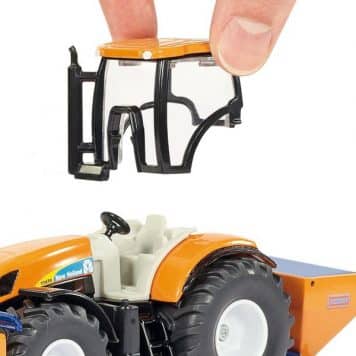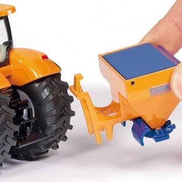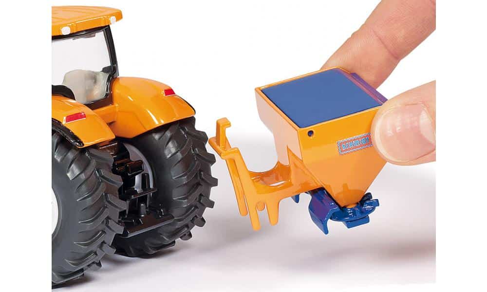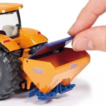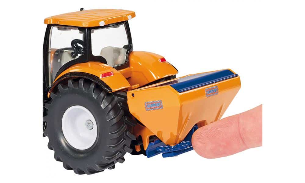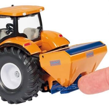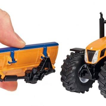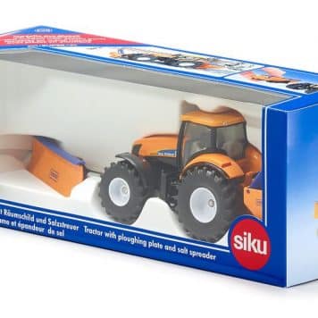 Traktori, jossa aura ja hiekoituslaite Oranssissa traktorissa on irrotettava aura/puskulevy ja hiekoituslaite/suolan levitin. Auraa/Puskulevyä voi liikuttaa kaikkiin suuntiin, ja takana olevan hiekoituslaitteen/suolan levittimen voi avata.