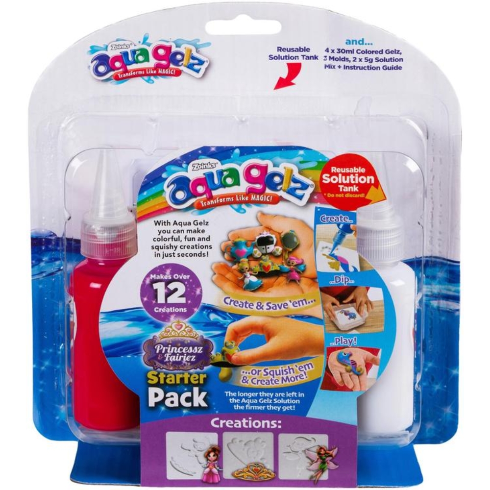 Pakkaus sisältää kaiken, mitä tarvitsee ensimmäisten Aqua Gelz -hahmojen luomiseen: neljä värikästä geelipulloa, kaksi aktivaattoripussia, kolme prinsessateemaista muottia, vesikupin ja selkeät ohjeet. Prosessi on helppo: valitse muotti, purista geeli muotoon