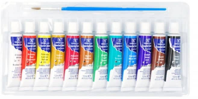 Taiteilijan värisetti. Kaikki perusvärit. Taiteilijan guassivärit ovat peittäviä ja pigmentiltään voimakkaita. Nyt taiteilemaan!