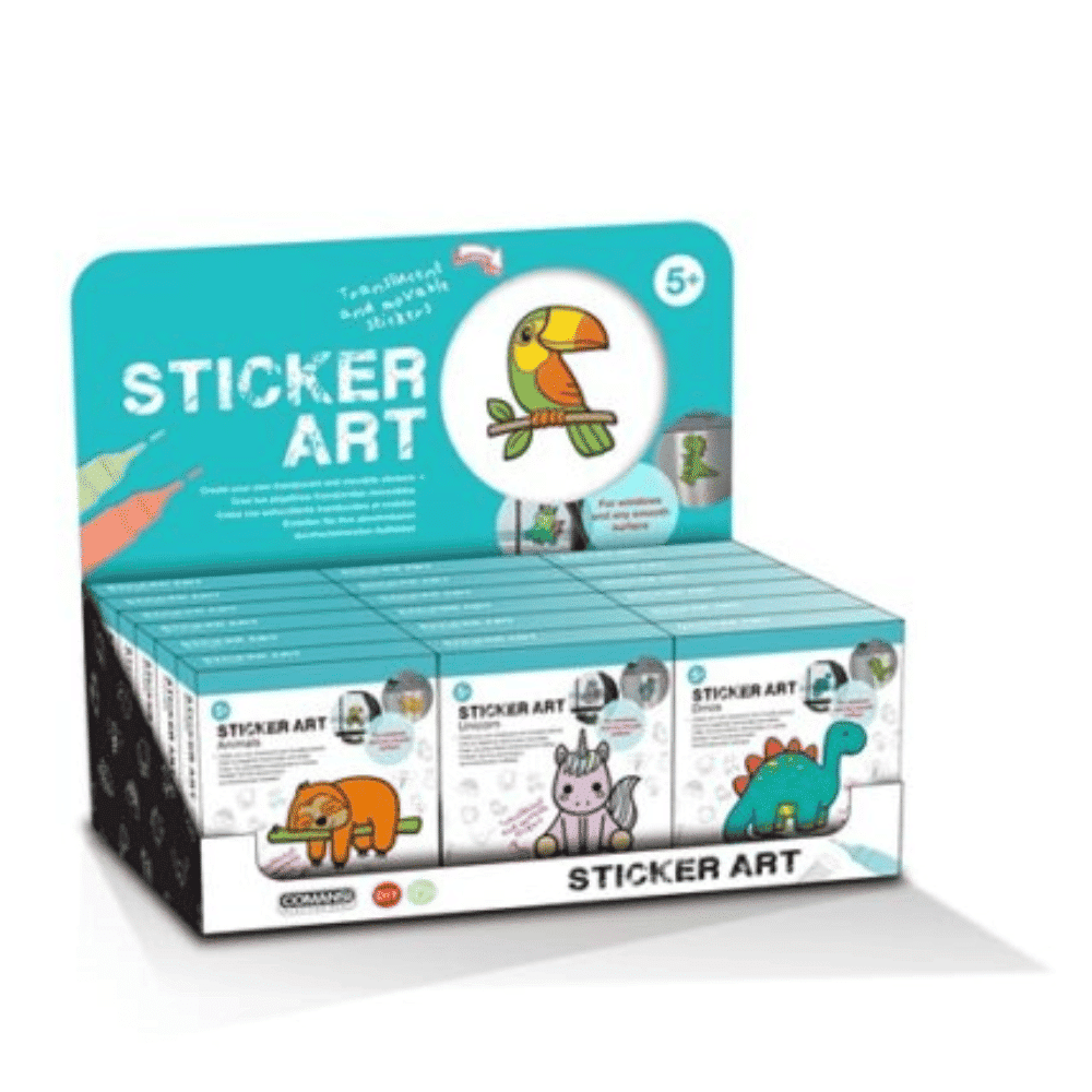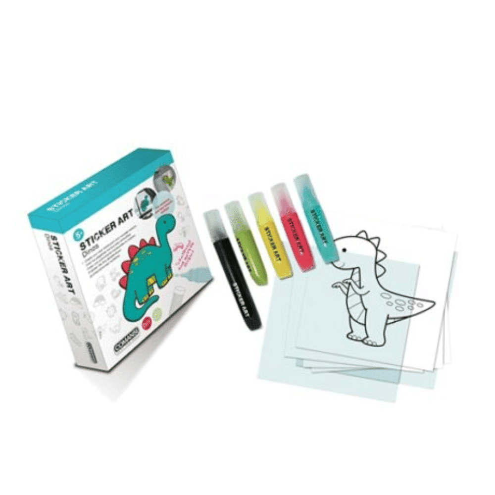 Sticker Art -dinosaurusikkunatarralla voit tehdä hienoa ikkunataidetta! Päästä luovuutesi valloilleen tehdessäsi omia tarroja, jotka voit liimata ikkunaan tai peiliin. Piirrä haluamasi kuvio geelimäisillä väreillä, anna kuivua yön yli ja tarrasi on valmis. Tarrat voi irrottaa ja siirtää uudelleen. Mukana tulee kolme erilaista dinosauruskuvaa.