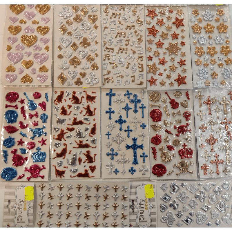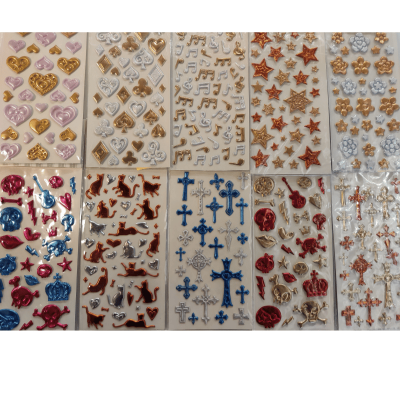 Kohotarra-arkki, jossa 12 erilaista aihetta. Tarrat ovat erikokoisia1-5 cm ja mattapintaisia. Arkin koko 12 x 26 cm.
