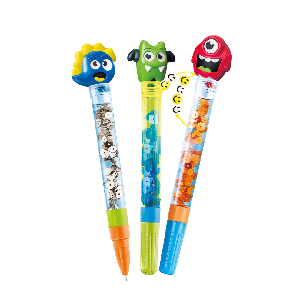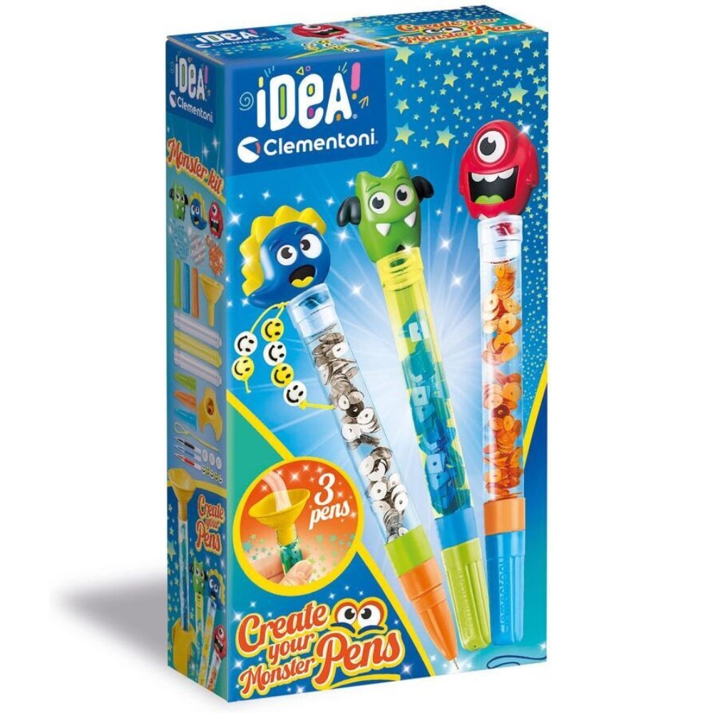 Suunnittele ja kokoa itsellesi persoonalliset kynät, jollaisia ei varmasti ole muilla! Setti sisältää tarvikkeet kolmen hurjannäköisen hirviökynän kokoamiseen: värikkäitä korkkeja, hylsyjä, kimalletta, pompuloita, koristeita, hahmoja.